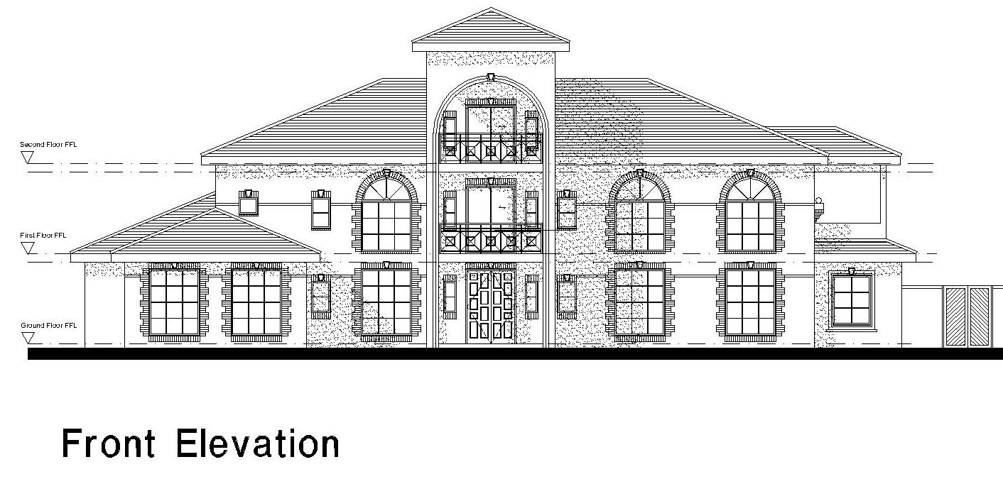 New-Build Residential We have prepared concept design drawings for a substantial 5 bedroom detached residence, including guest bedroom all with en-suite accommodation, Study, Library in addition to the normal living accommodation, staff quarters, Swimming Pool, Ancillary Summerhouse Pavilion and Garaging for a client in Ghana.